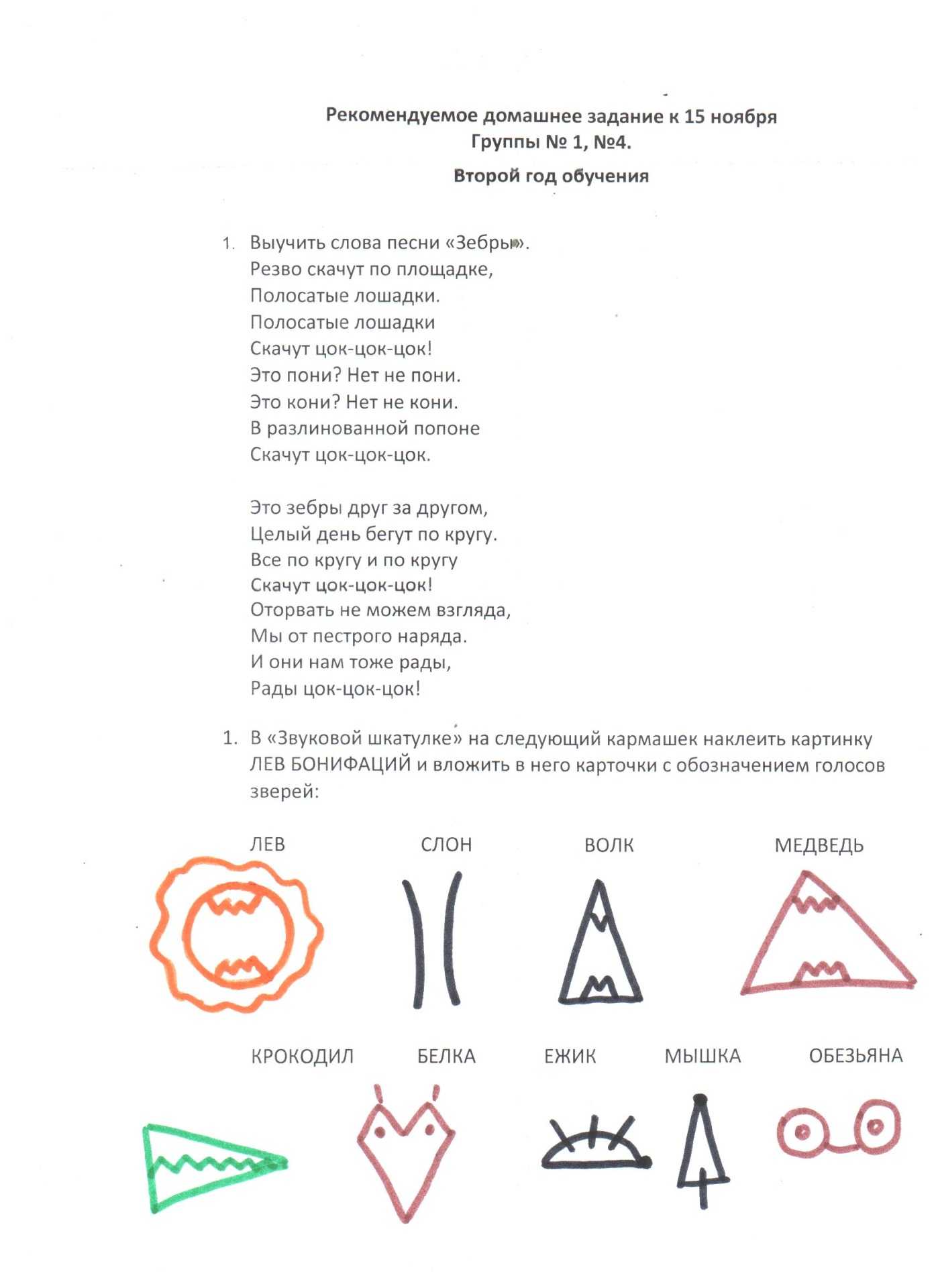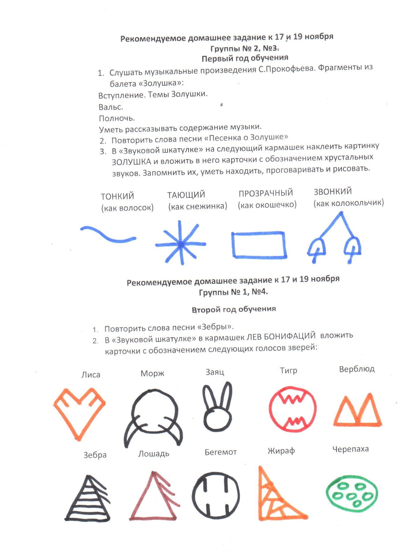2 год обучения: из музыкального цикла «Карнавал животных», который ребята будут слушать на уроке музыки, выбрать одно-два животных для рисования. Уметь рассказать о выбранном животном.