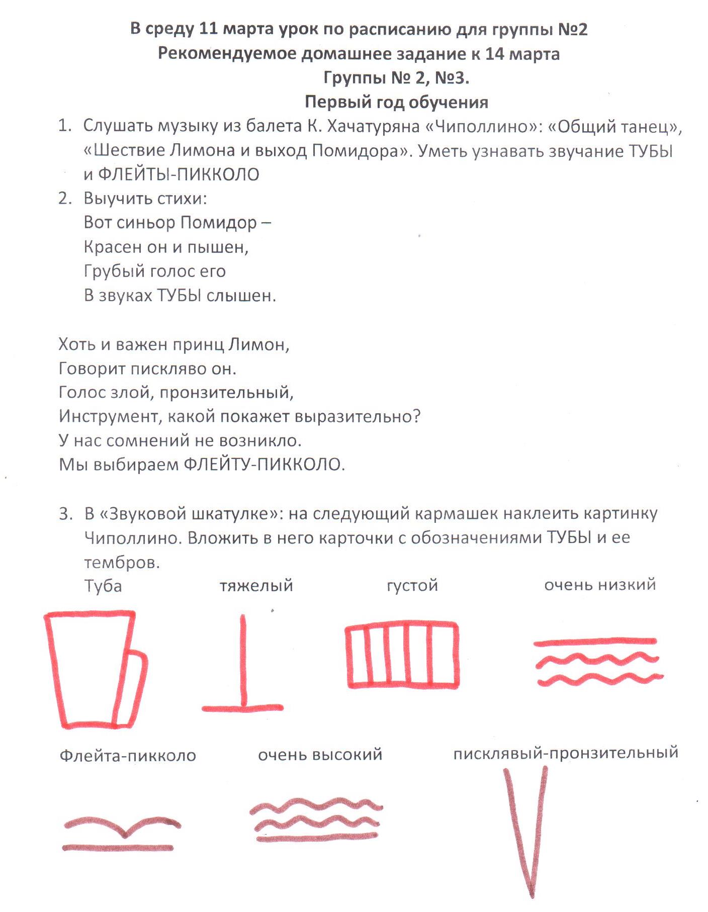 - Знать тембры гобоя: гнусавый, певучий, высокий (написали на уроке в табличке).