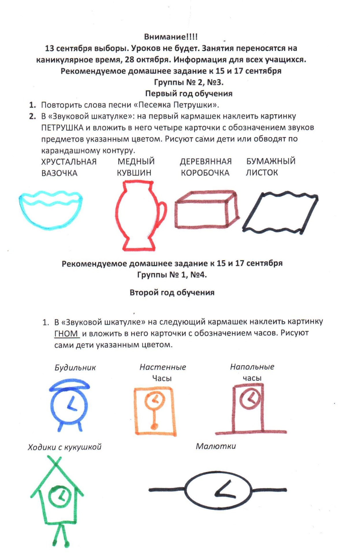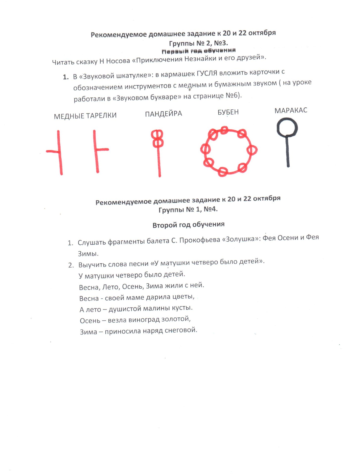 1 год обучения: в Рабочей тетради выполнить задание на страницах 43 и 45.