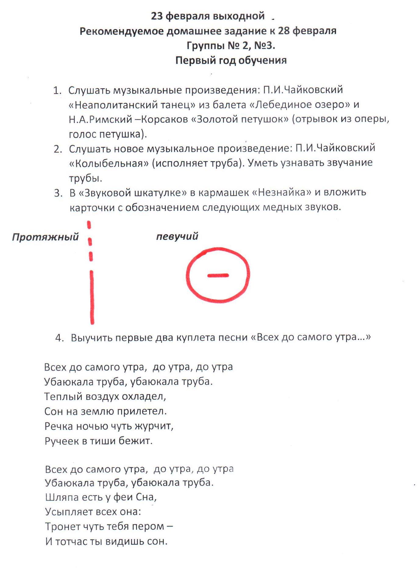 - Выучить четыре куплета песни «Всех до самого утра…»
