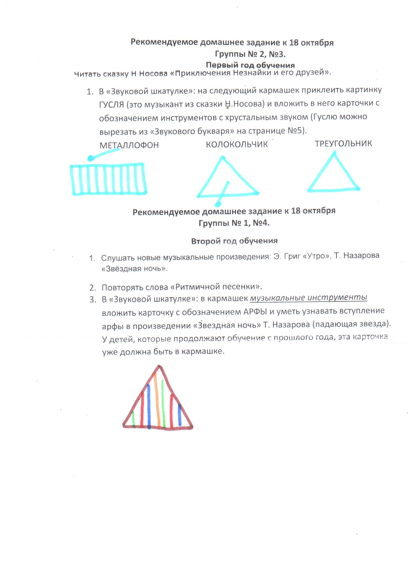 - В рабочей тетради выполнить задания на странице 42.1 (без раздела про арфу).